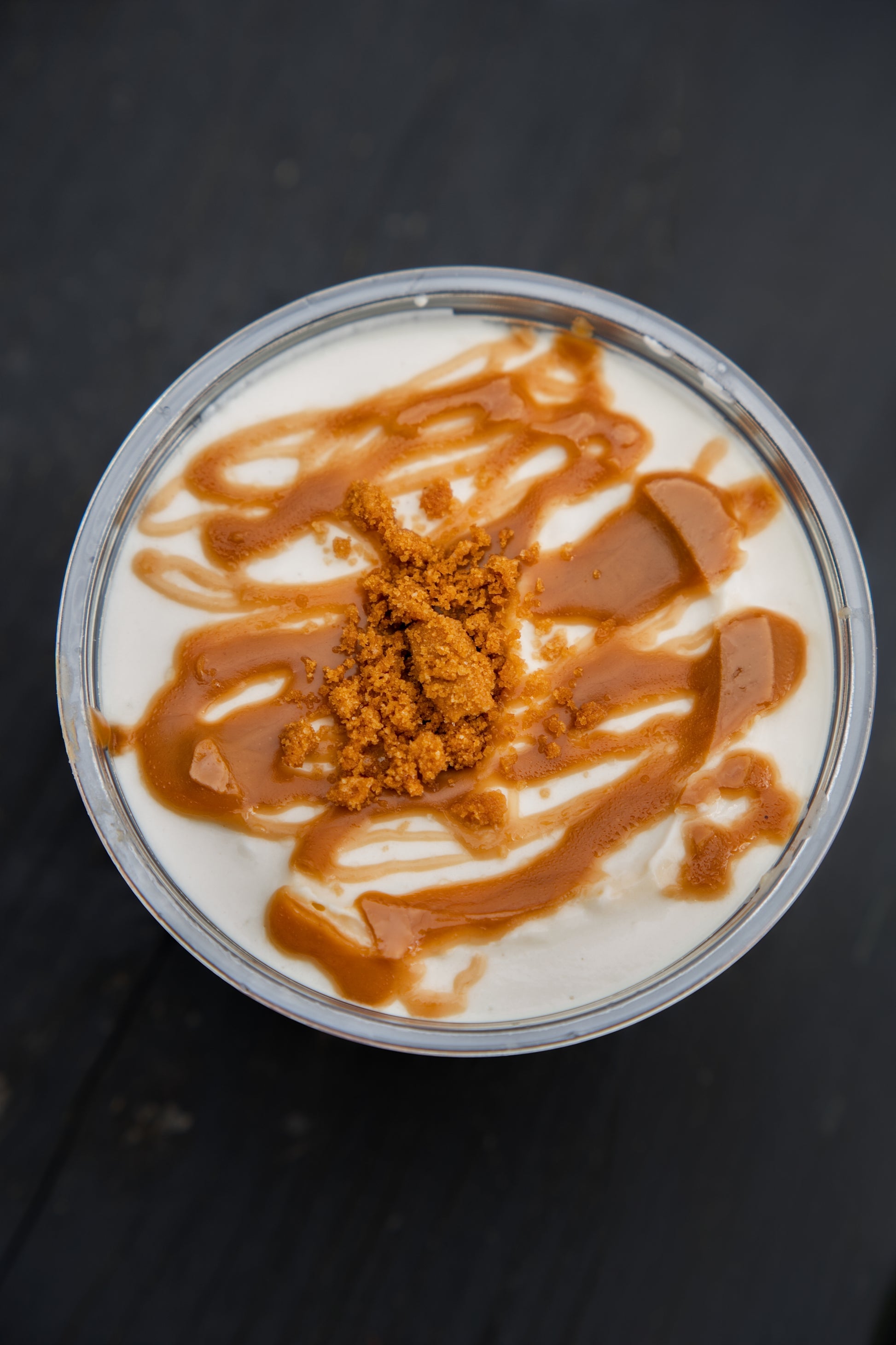 Biscoff Cheesecake: Greek Yogurt, Soft Cheese, Biscuit Spread, Biscuit Crumb, Vanilla Protein Powder: Original Caramelised Biscuits (58%), WHEAT Flour, Sugar, Candy Sugar Syrup, SOYA Flour, Salt, Cinnamon, Sugar, Emulsifier (SOYA Lecithin), Acid (Citric Acid), Full Fat Soft Cheese (MILK), Citrus Fibre, WHEAT Flour, Cinnamon, Greek Yogurt (MILK), Whey Protein Concentrate (MILK), Whey Protein Isolate (MILK), MILK Protein Concentrate, Skim MILK Powder, Flavour, Sodium Chloride, Colour, Sweetener (Sucralose)