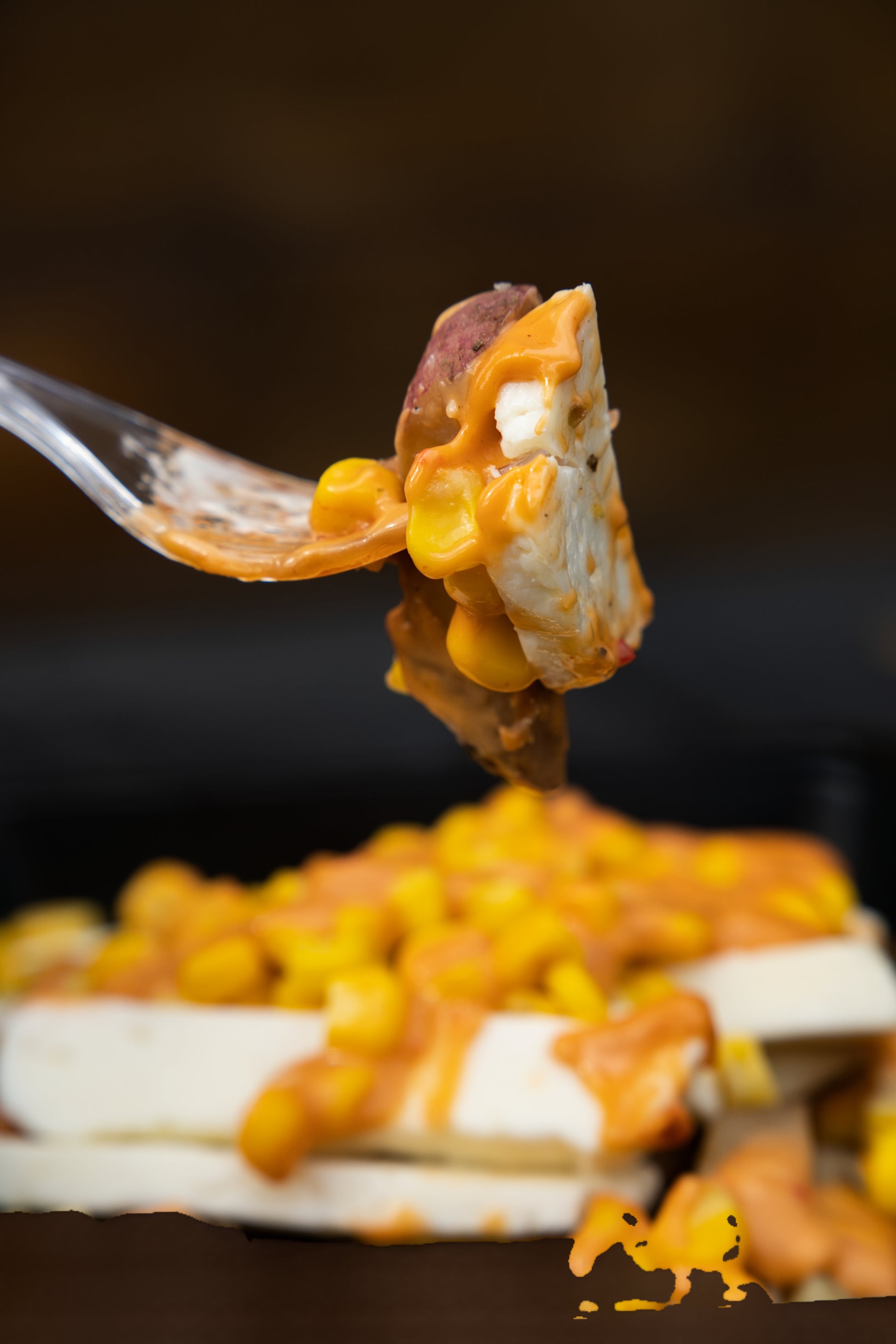 HALLOUMI STRIPS, WHITE POTATO, SWEETCORN, CHIPOTLE SAUCE