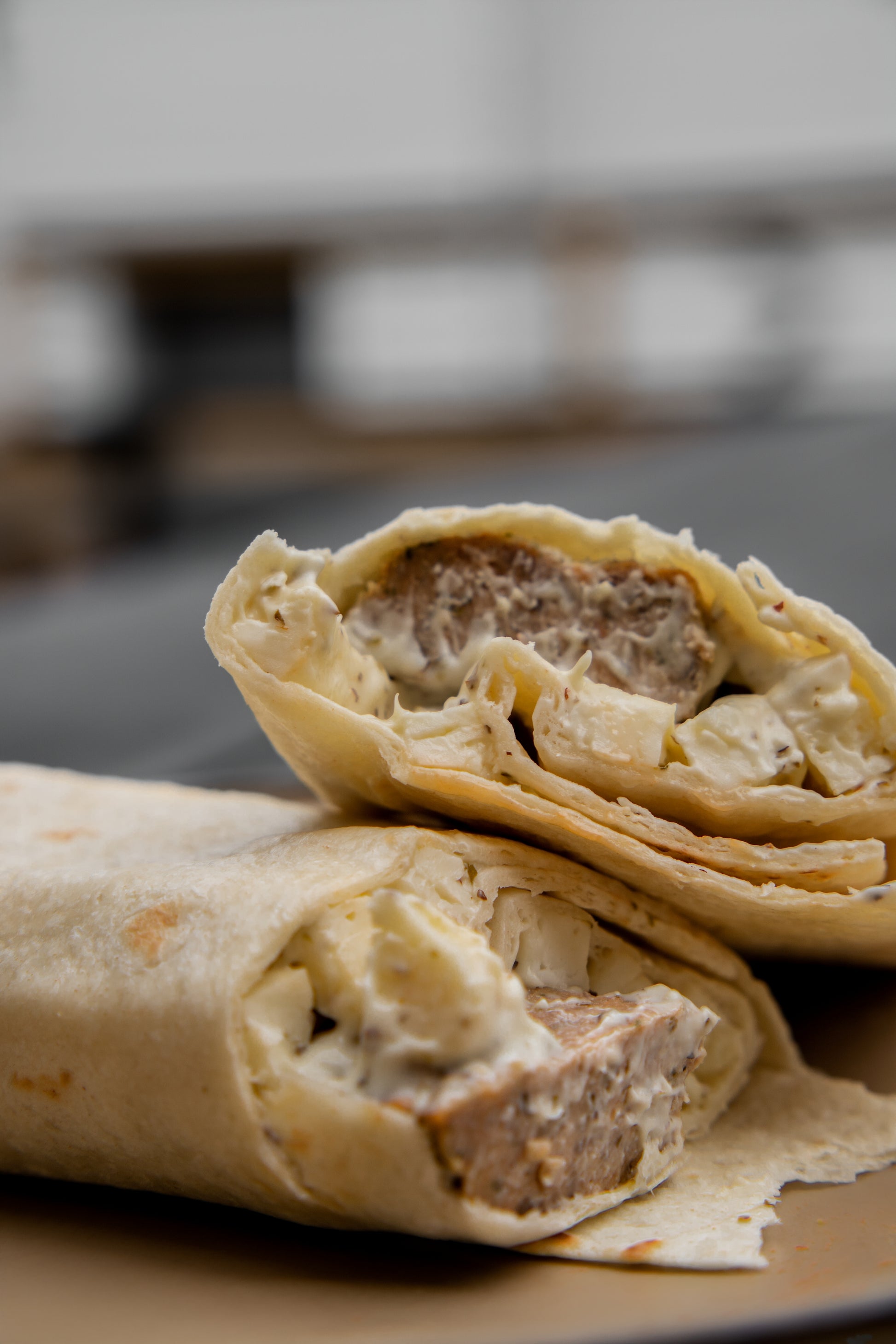 Tortilla Wraps: WHEAT FLOUR (with calcium, iron, niacin, thiamin), water, rapeseed oil, dextrose, raising agents (E450. E500, E341), salt, Kofta: lamb (82%), seasoning (contains salt, spices, herbs, preservative (sodium METABISULPHITE), chilli powder, red peppers, onion, isolated SOYA protein (SULPHUR DIOXIDE), rusk (contains WHEAT FLOUR (calcium carbonate, iron, niacin, thiamin), pepper paste (red peppers, salt), Halloumi: MILK (blend or cow and sheep and goat), salt, mint, Basmati Rice, Tzatziki: water, rapeseed oil, sugar, yogurt powder, (MILK), yogurt powder, acid, citrus acid, salt, whole EGG powder, mint